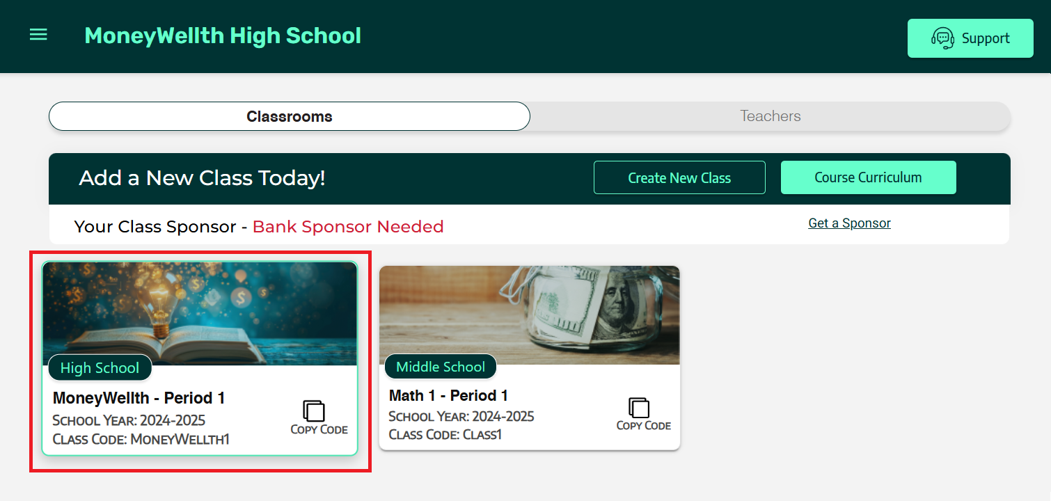 Once you've created a class, you can easily edit its details, including the class name, class code, assigned teachers, school level, and school year.