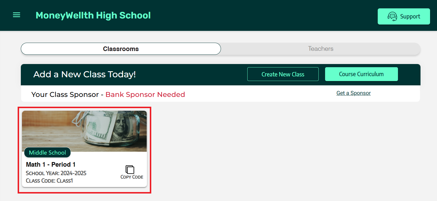 - Click on the classroom tile containing the student profile you wish to delete.