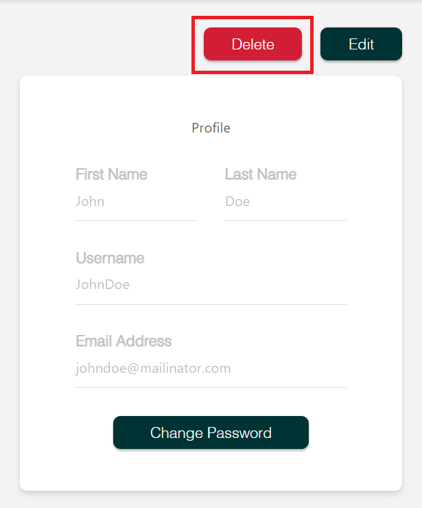 - Click the Delete button to remove the profile and confirm the action by clicking the Yes button on the popup.